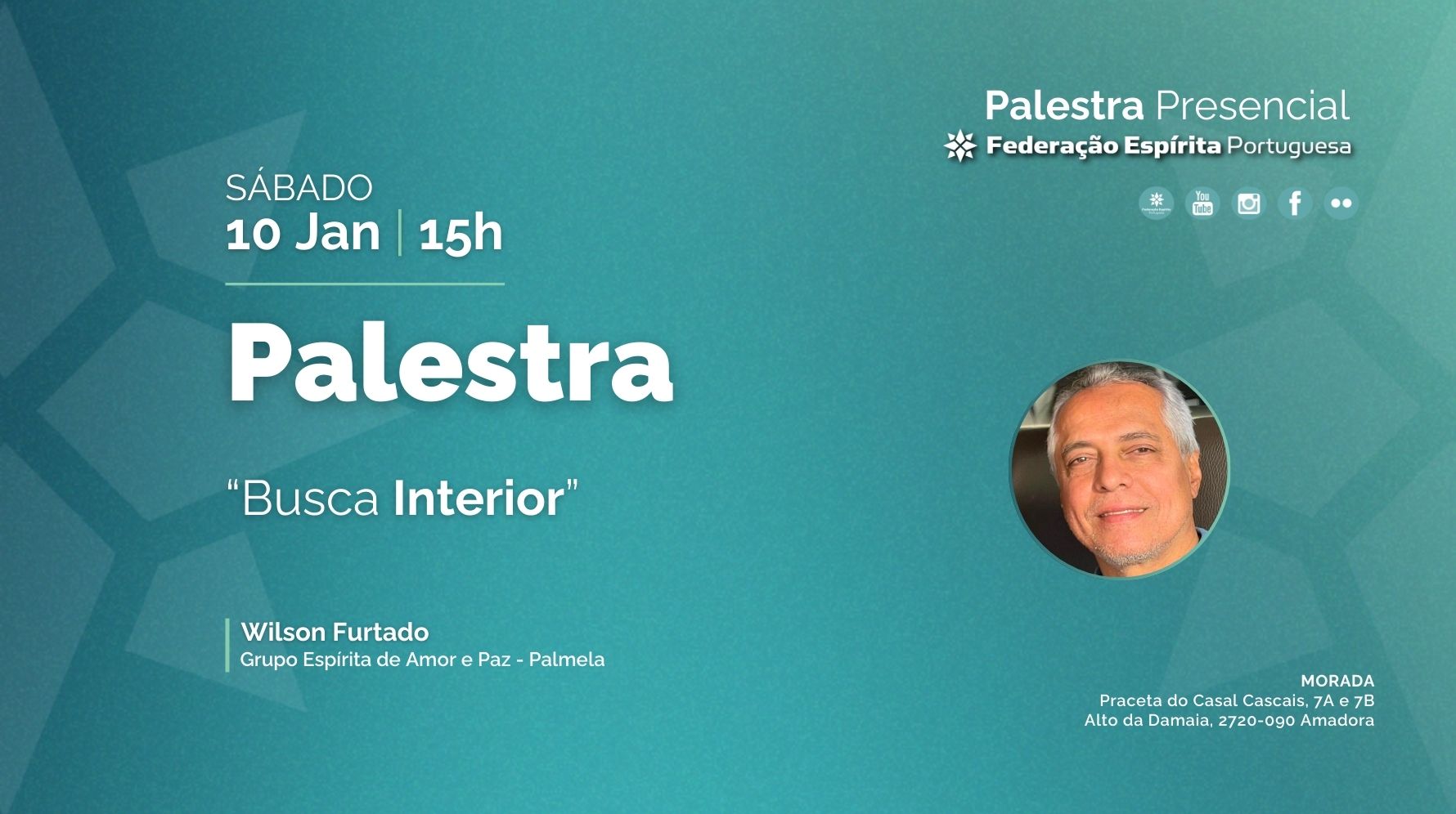 No próximo sábado, dia 10 de janeiro 2026, Wilson Furtado realizará uma palestra na Federação Espírita Portuguesa com o tema “Busca interior”.
